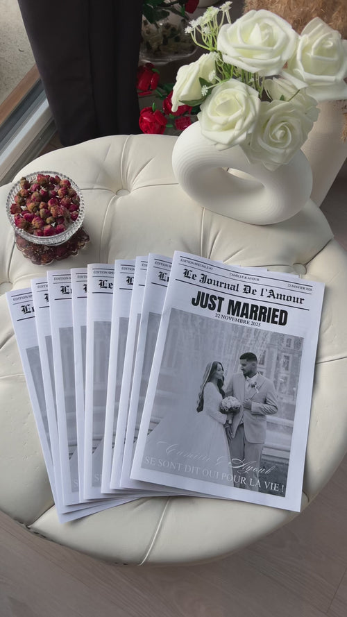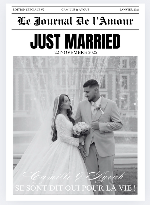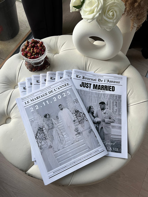 L’édition « Just Married », prolonge la magie après le jour J. Elle est pensée comme un souvenir à offrir aux invités présents mais également à celles et ceux qui n'ont pu venir. C'est un moyen élégant de les remercier, de (re)vivre les moments forts de la journée, de partager les plus beaux souvenirs, avec même un article dédié au voyage de noces des mariés.